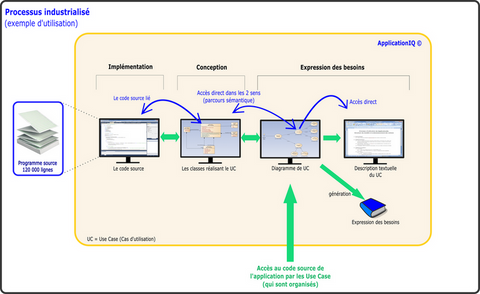 Vous trouverez ci-contre un autre exemple de processus de développement industrialisé présentant un Référentiel Entreprise des règles métier. Parmi ses avantages, il permet à l'entreprise de capitaliser l'expérience.